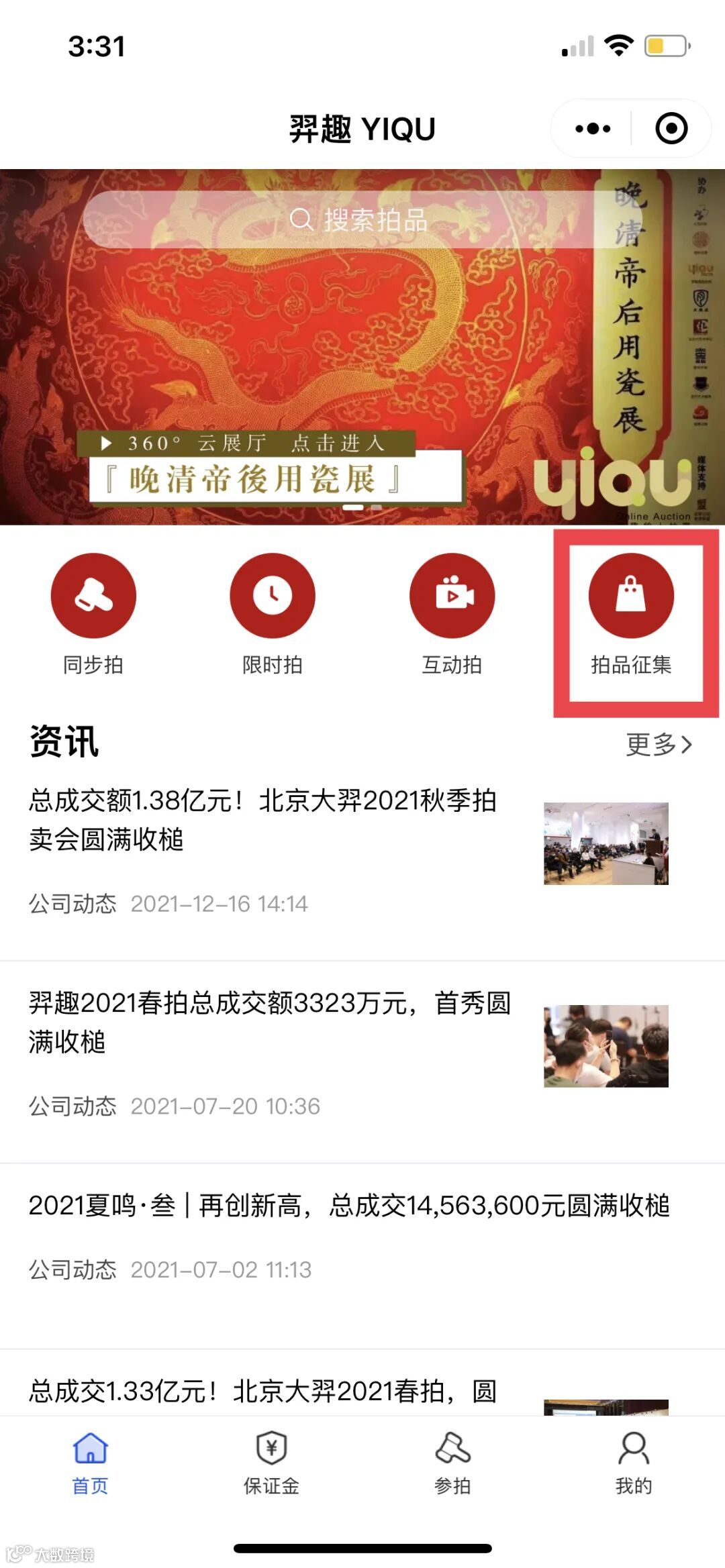您亦可进入微信小程序【羿趣】首页的点击【拍品征集】