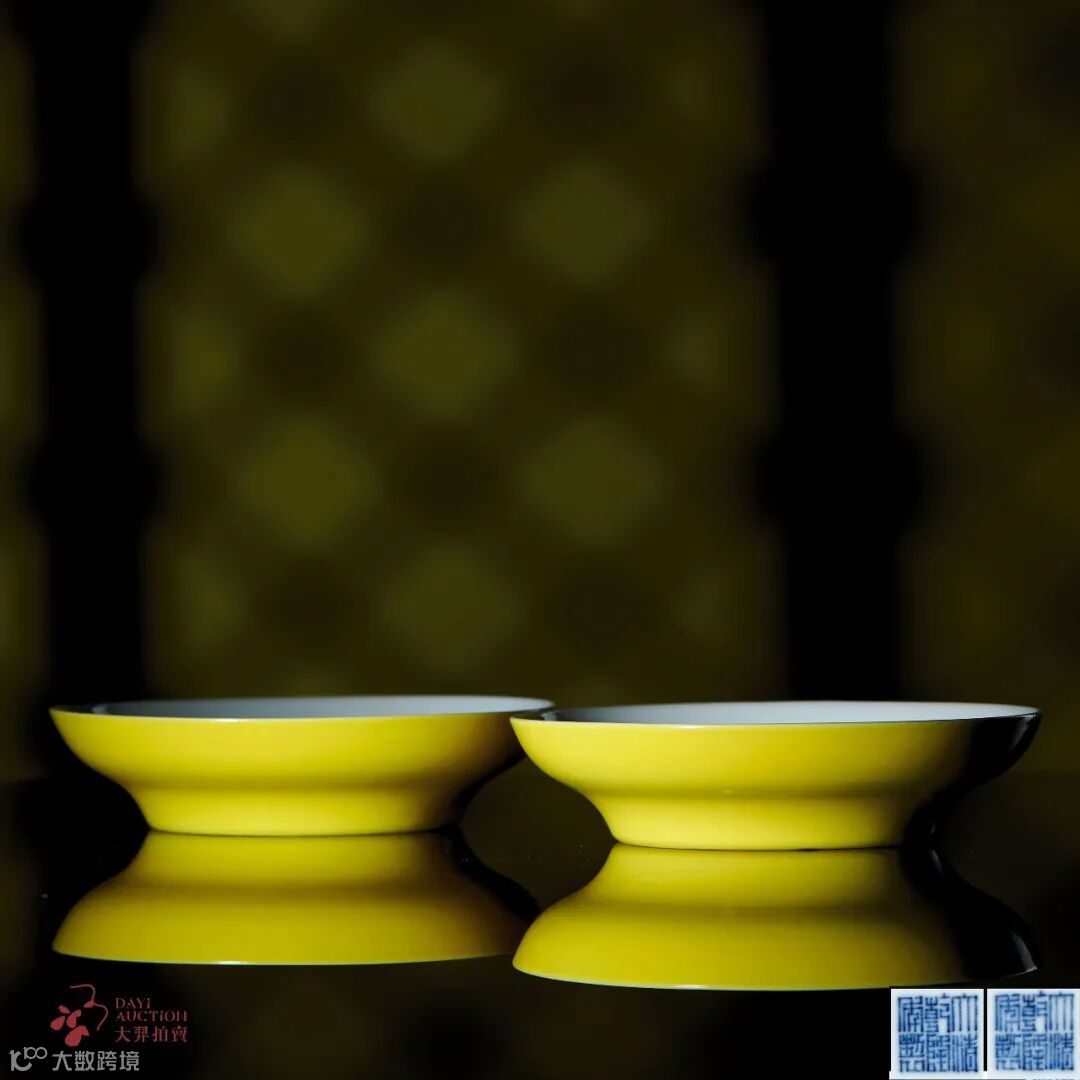 柠檬黄釉折腰盘一对