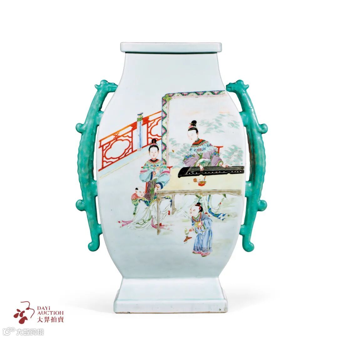 粉彩仕女婴戏图双耳大尊
