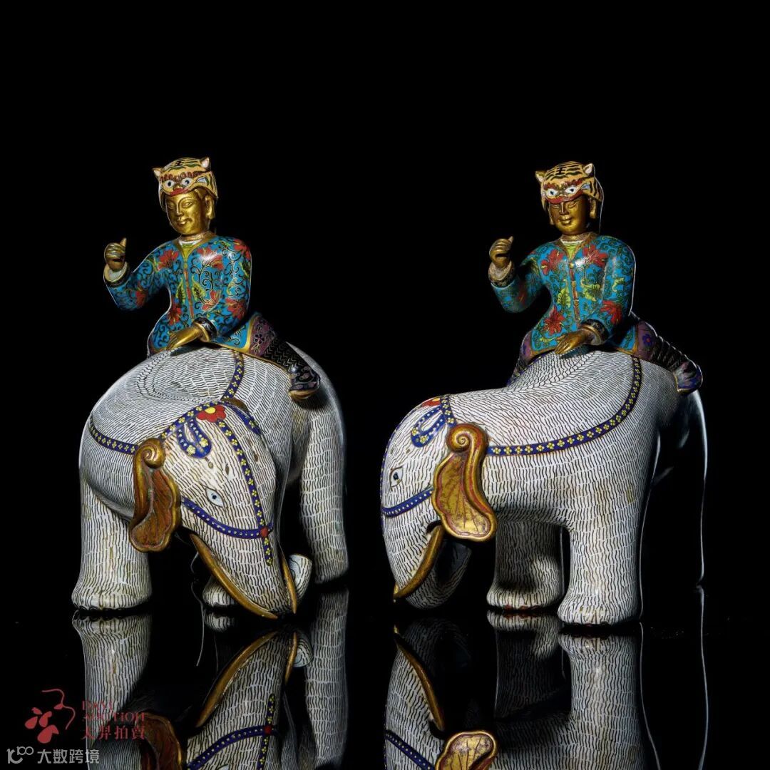 铜掐丝珐琅童子戏象摆件一对