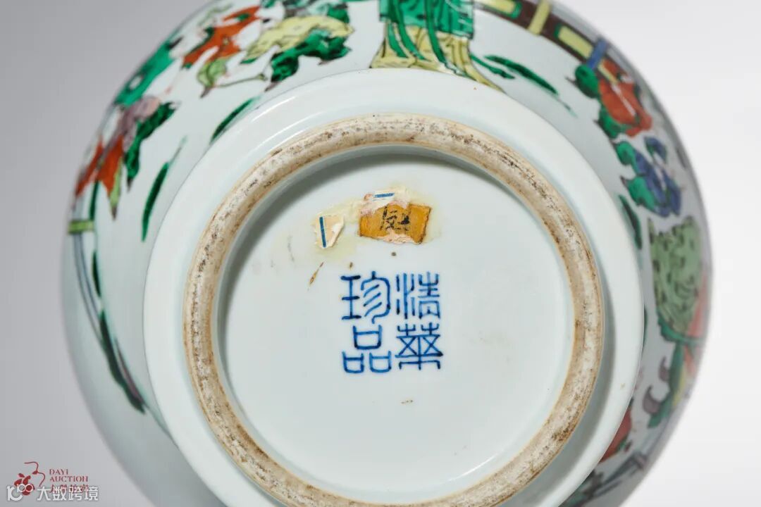 本场还有另一件“清华珍品”以五彩绘之。“五彩”有清一朝五彩在康熙朝极为流行,由于康熙晚期五彩逐渐演化出粉彩这一品种,故而雍正之后出现粉彩潮流。直至光绪朝五彩出现回光返照局面,其用彩与神韵虽较之康熙五彩稍弱,但仍不乏精品问世。
