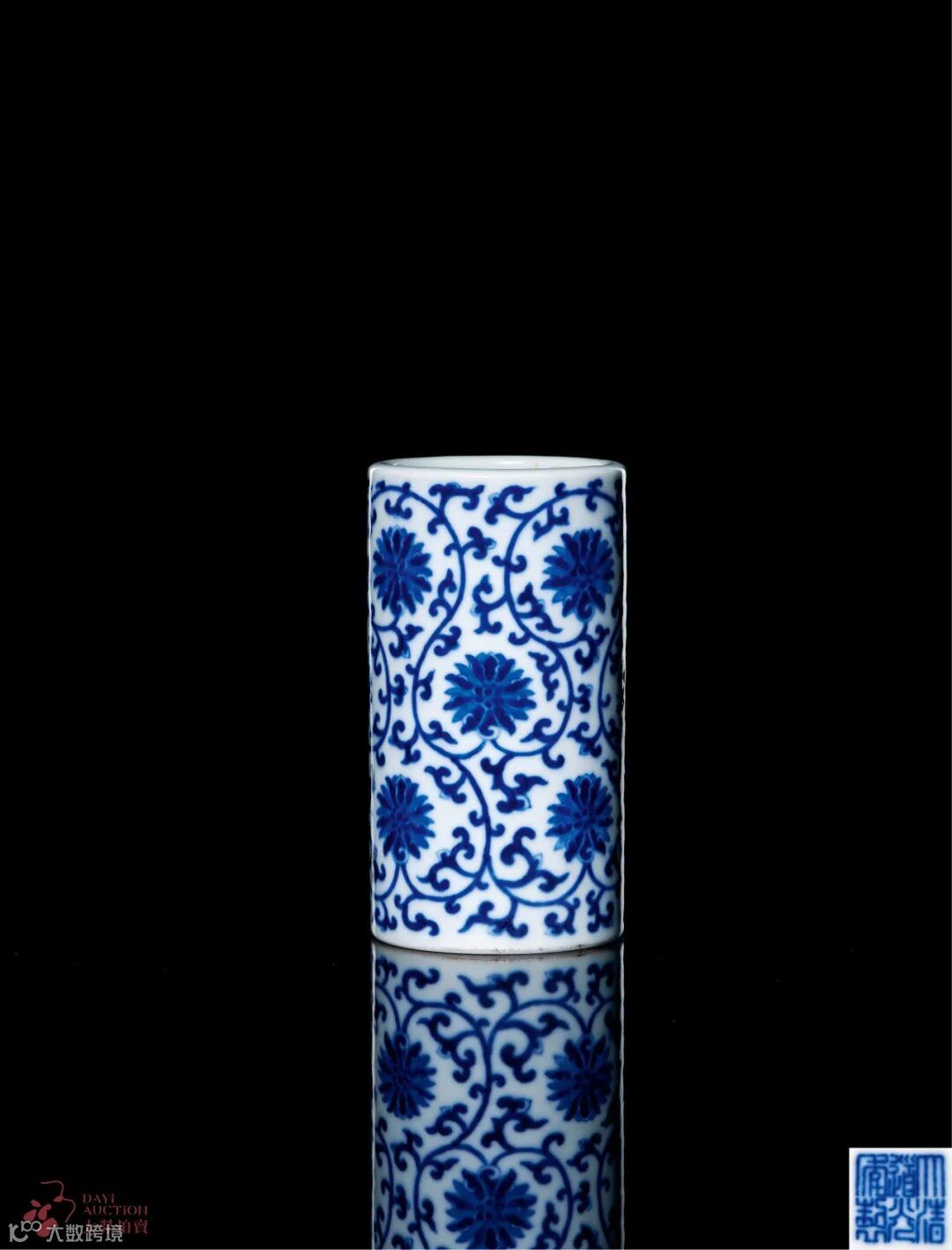 LOT.626 清道光 青花缠枝莲纹笔筒