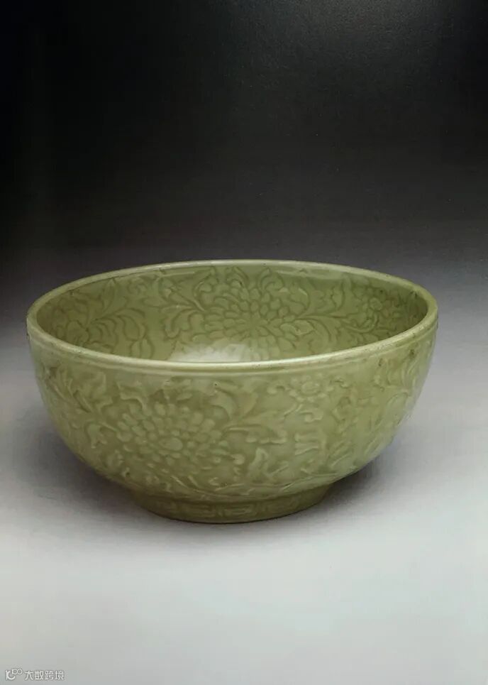明永乐 龙泉青釉暗刻缠枝花卉纹墩式碗