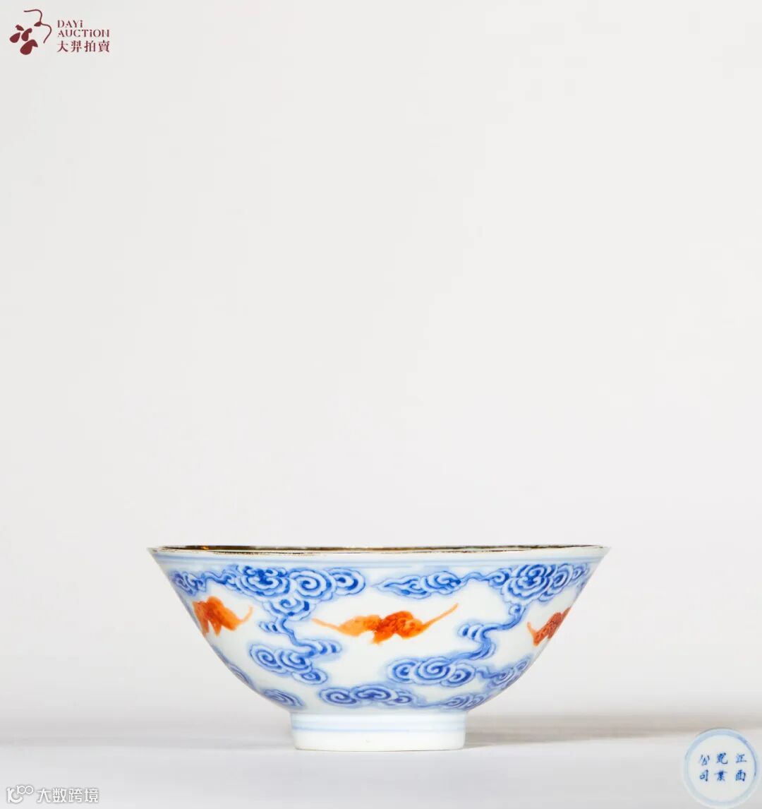 清晚期-民国 青花矾红云蝠纹碗