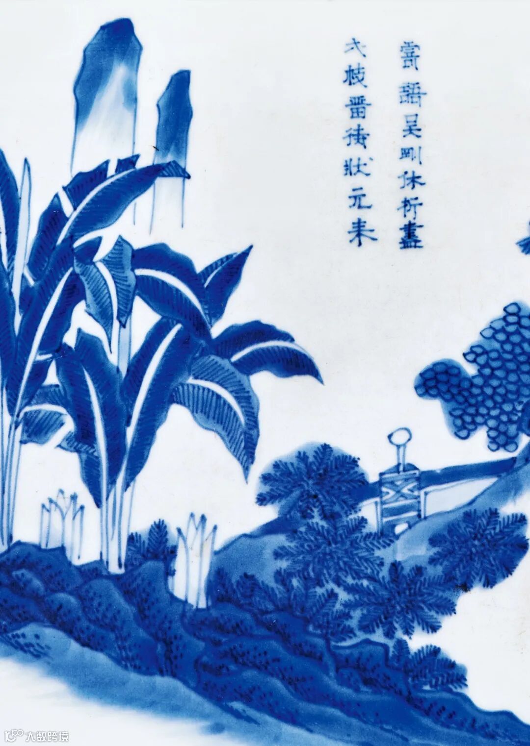 此类山水纹饰所绘士子文人超然世外的生活逸趣,文士以“隐于瓷画中”进行自我言说,既体现了这种隐逸心理,又折射文人如何面对失意生活,抒发内心的不悦,还可通过山水表达出当时社会的真实历史。
