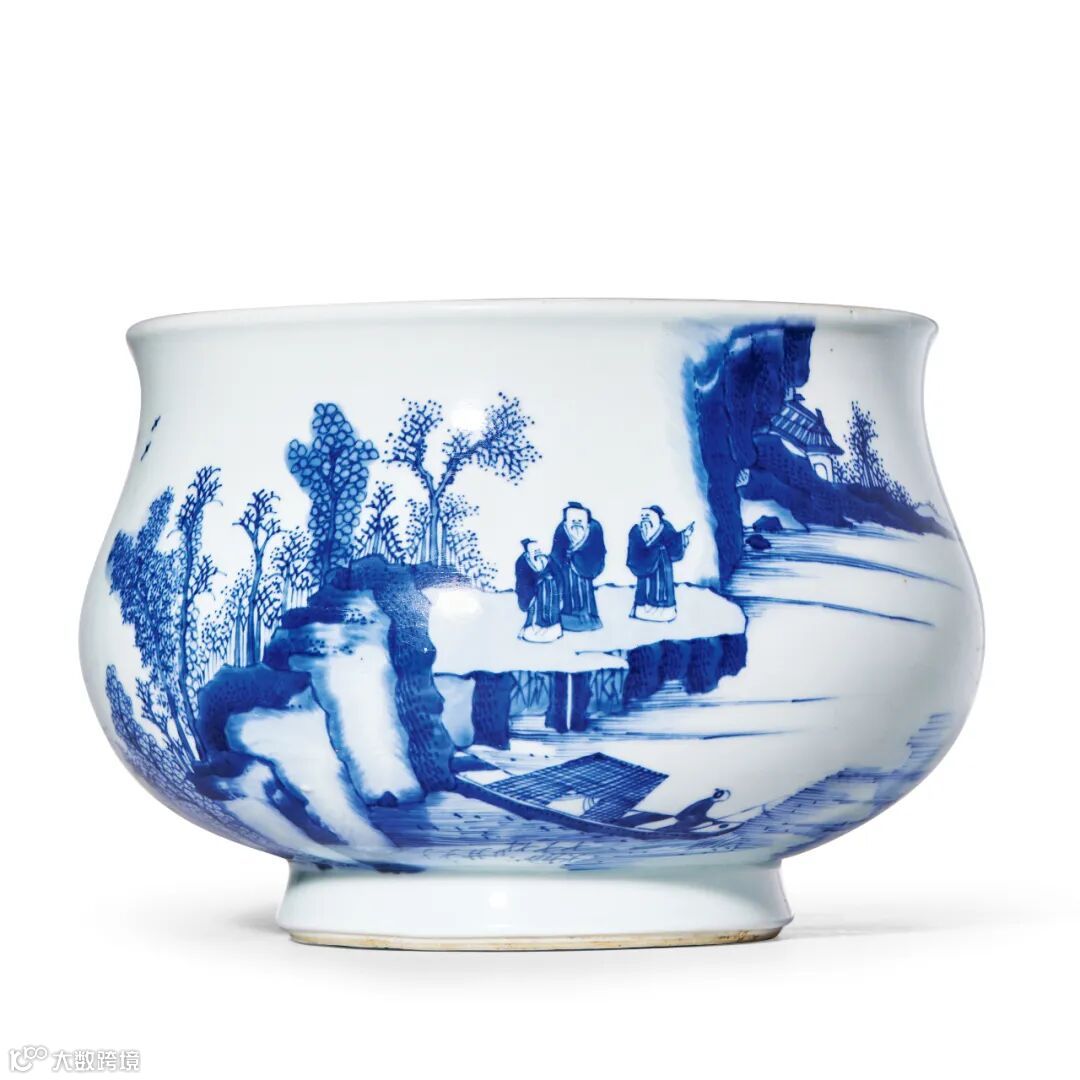 青花山水人物图炉