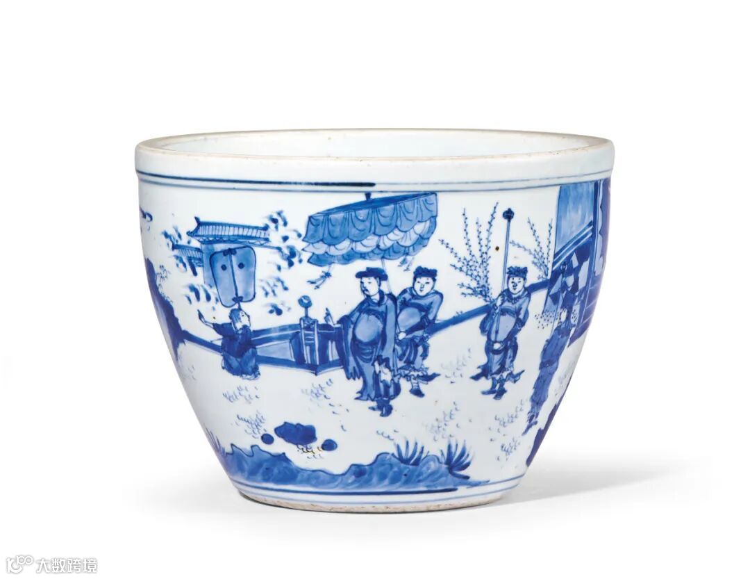 明崇祯 青花“踏雪寻梅”图案缸