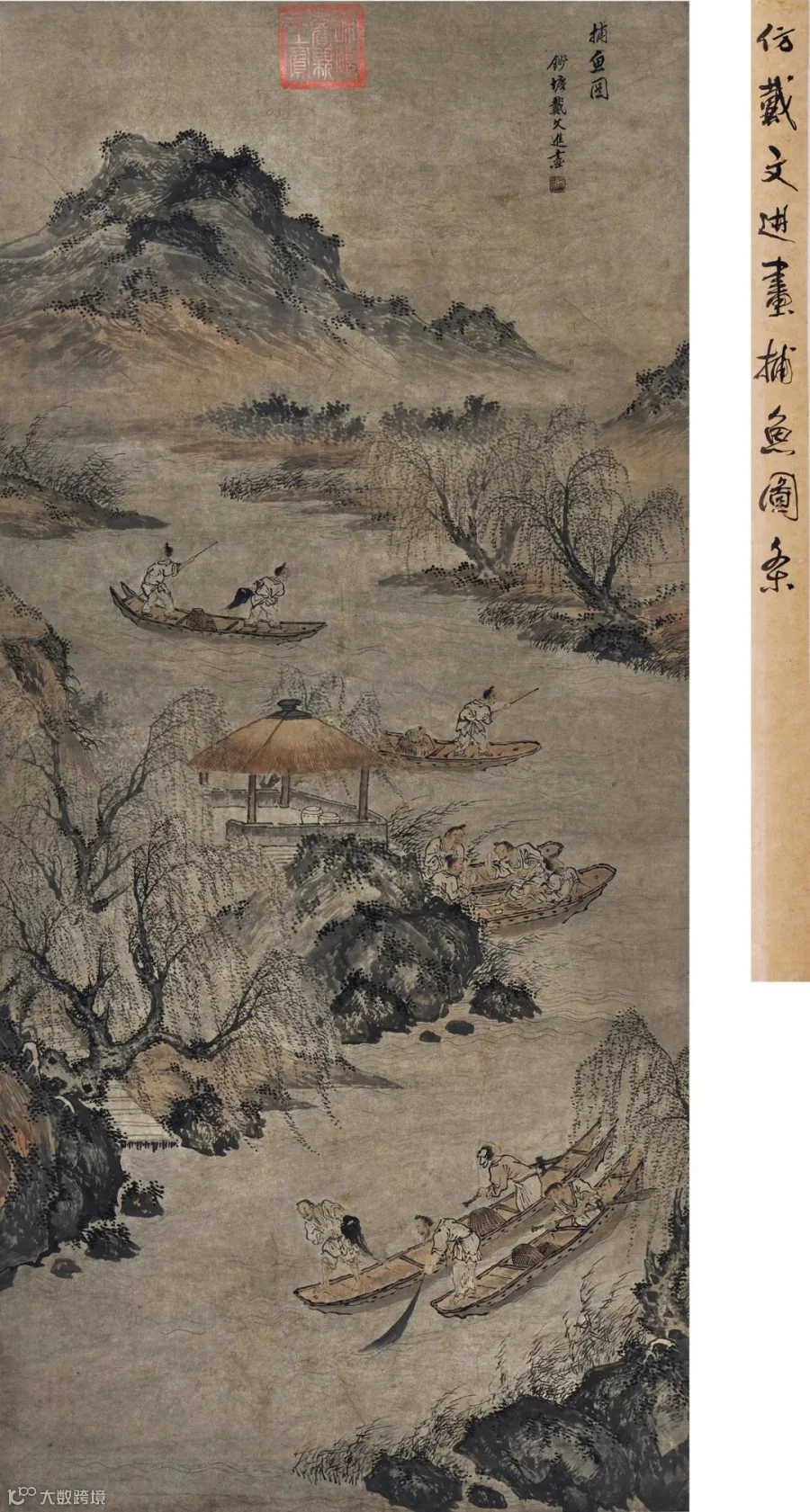 题识:捕鱼图,钱塘戴文进画。