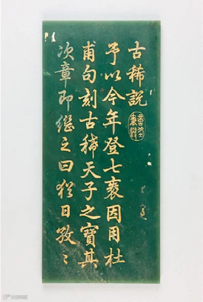 乾隆四十五年十二月二十三日礼部右侍郎阿肃《进单》:“奴才阿肅跪進:……御製古稀説刻玉版一册……。”