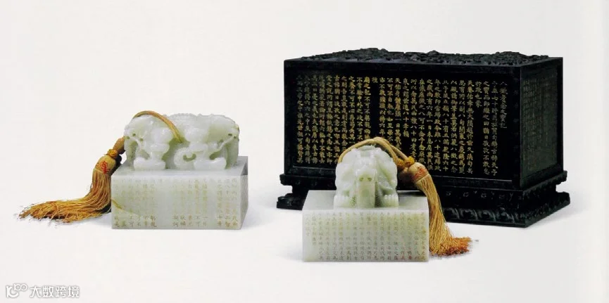 乾隆四十五年十二月《各作成做活計清檔》中记载:“ 初九日,員外郎五德催長大達色來説,太監鄂魯里交:碧玉古稀天子之寳一方(上貼本文五張)傳㫖:着照乾清宫現設敬天勤民之寳匣一樣配匣盛装,先呈樣,欽此。”