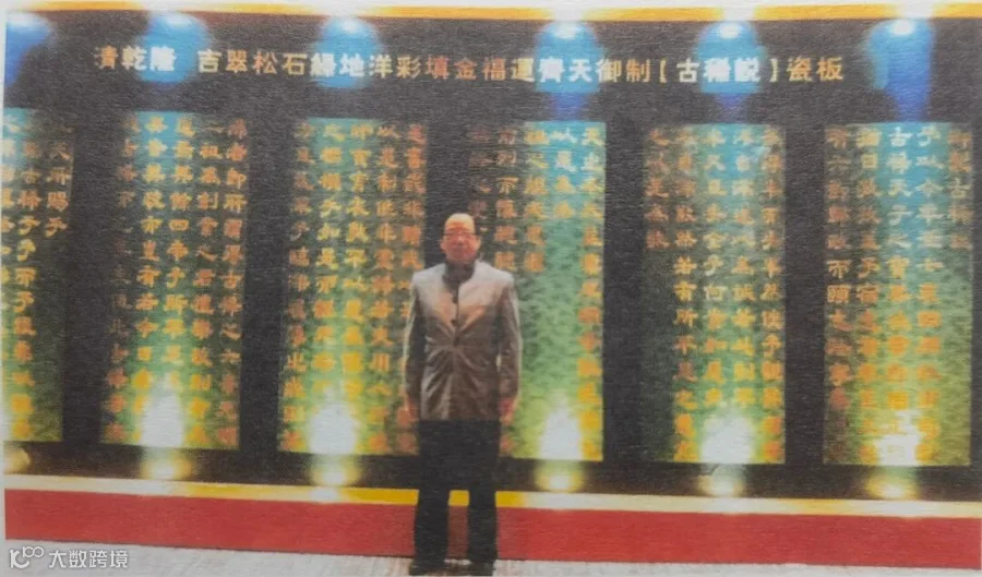 张宗儒在清乾隆 松石绿地洋彩填金福运齐天御制“古稀说”瓷板合影