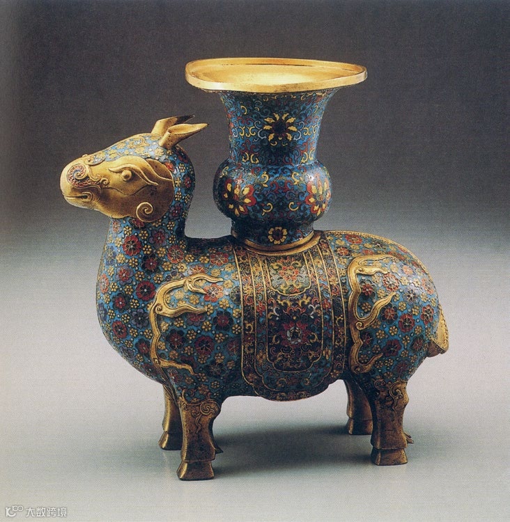 明清之际,仿古摹古之风盛行,仿古之器应运而生,寄托着古人怀古的理想。清乾隆帝好古,不仅编订《西清古鉴》诸书,还命造办处仿商周青铜器制作仿古器物,此尊即为一例。拍品造型仿周牺尊而制,参见《钦定四库全书—子部—西清古鉴》卷九,页52。台北故宫博物院收藏一件清乾隆时期掐丝珐琅牺尊[参见《古色—十六至十八世纪艺术的仿古风》,页187,图III-56],形制气韵与拍品相似,古朴典雅,气韵生动,映射出乾隆朝青铜工艺的独特魅力。