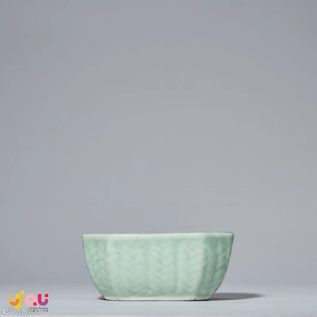 豆青釉模印藤编纹八方洗