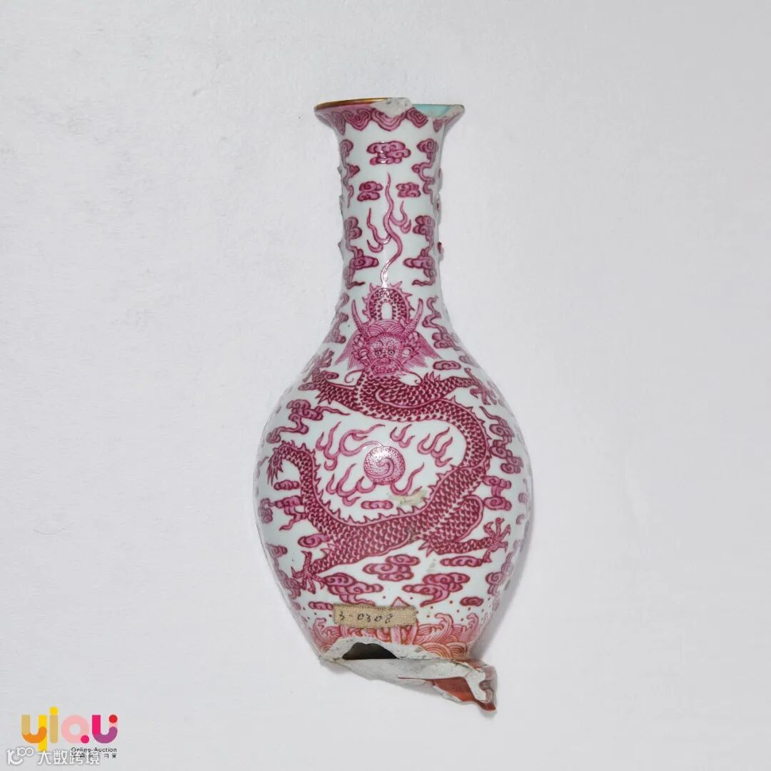 胭脂红彩云龙海水纹壁瓶