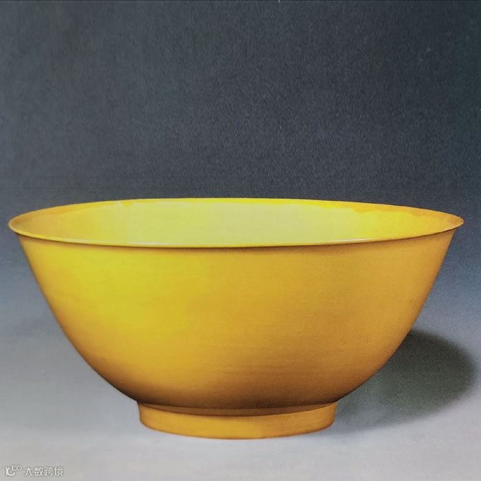 正如LOT242 娇黄釉碗,明显以清宫藏前朝制器作摹本。黄釉发色纯正雅致,宝光内含,正合《陶雅》「康雍蛋黄器,色具鲜明」之赞誉。整器胎质细腻坚实,通体素净,不假纹饰,纯以天然釉色之美取胜,观之大感繁华过境,心素如简,却又不失端庄秀丽。底施白釉,修胎自然流畅,形制规整,青花双圈内书「大清康熙年制」六字双行楷书款。