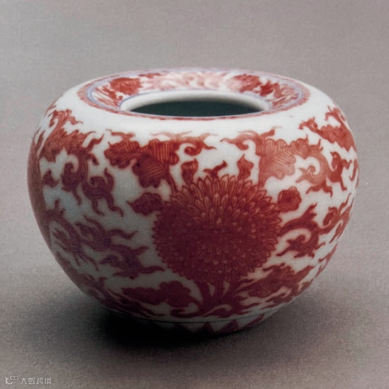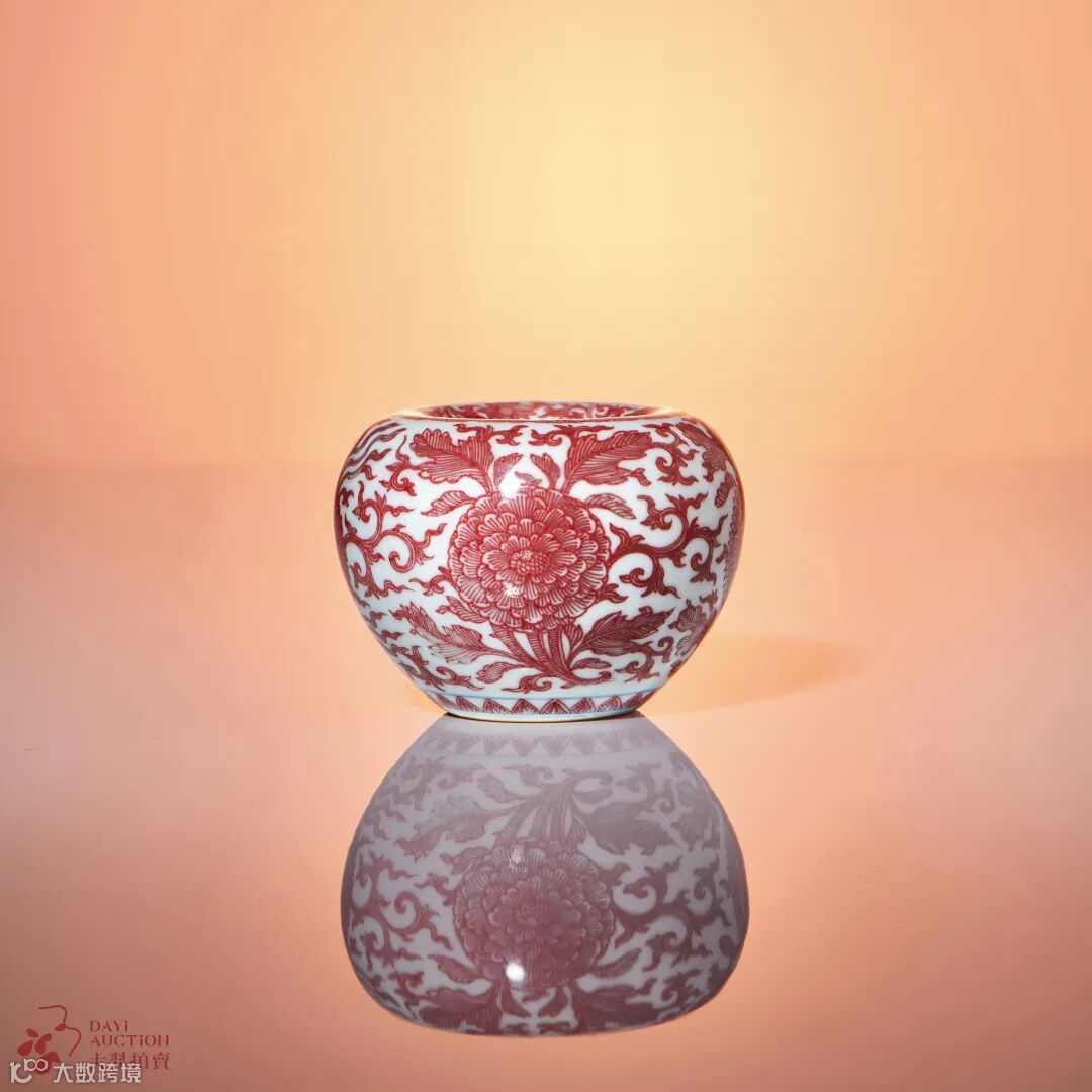 本品正融入刘源清新脱俗的设计理念,以釉里红一色描绘装饰,皆采取线描之法绘制,妍而不俗,秀而不媚,穆穆之中自有熙朝之英气扑人眉宇。