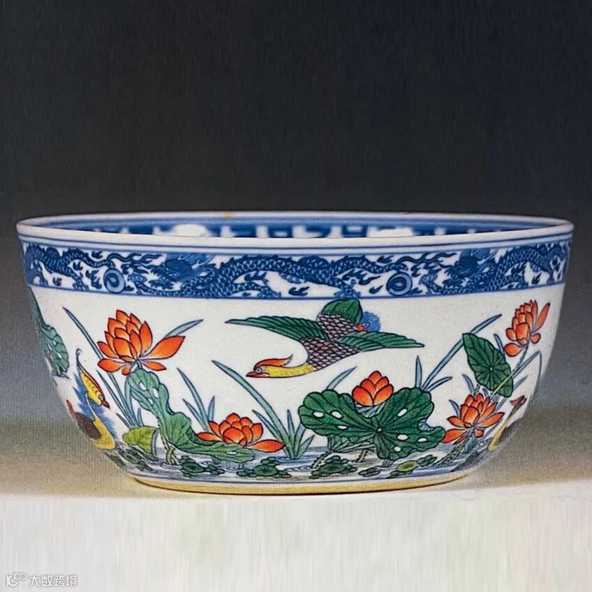 斗彩荷塘鸳鸯纹卧足碗