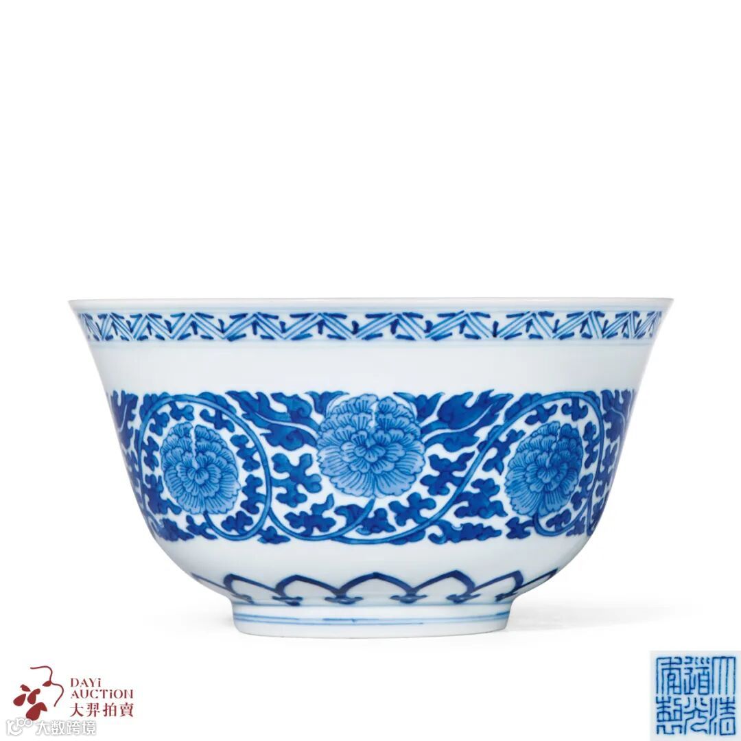 绘缠枝花卉纹饰因其花枝连绵不断,亦寓有“生生不息”之意。胫部则饰莲瓣纹。圈足上描绘双线。底心青花书“大清道光年制”六字三行篆书款。整器纹饰清雅,构图明快,是道光御窑精品。
