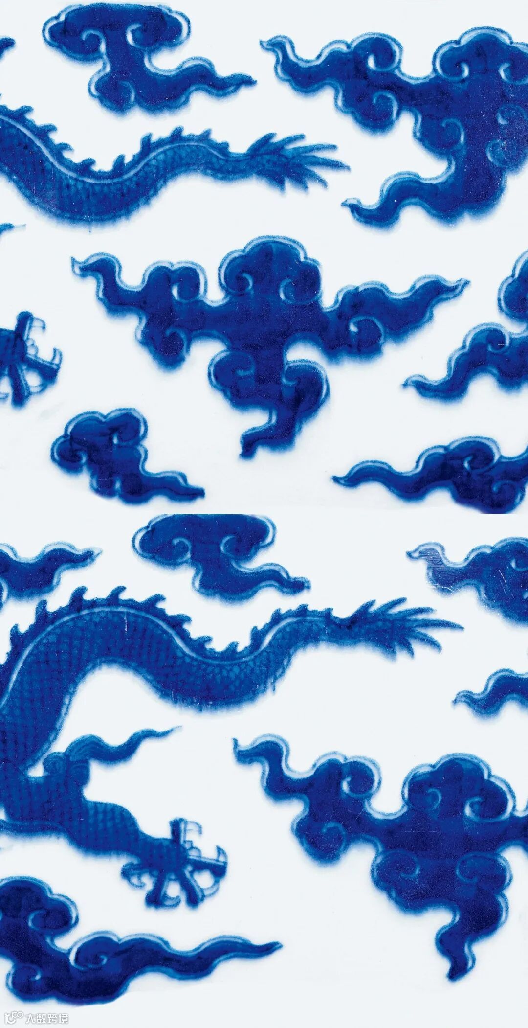 其造型来源于嘉靖官窑龙缸,嘉靖官窑深得世人喜爱,是雍乾二朝重要摹制的对象,其受欢迎程度不亚于永宣二窑。该式缸始创于雍正时期,流行于干嘉道三朝,摹仿对象是嘉靖官窑龙缸。缸上的青花纹饰色泽秾艳深沉,与嘉窑回青如出一辙,且龙的形态也是刻意摹仿嘉窑风格,可参阅北京故宫博物院藏清雍正青花海水云龙纹卷缸,此类文房陈设器备受宫廷喜爱,遂成清代御窑经典品类。