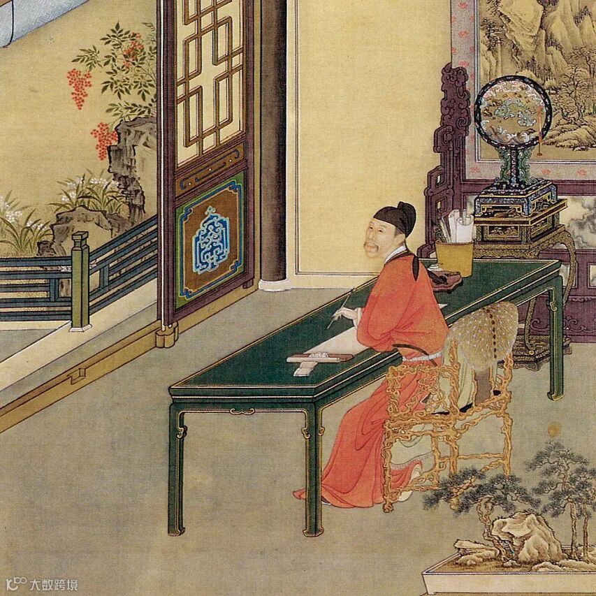 左:清雍正《胤禛行乐图·书斋写经页》(北京故宫博物院藏)