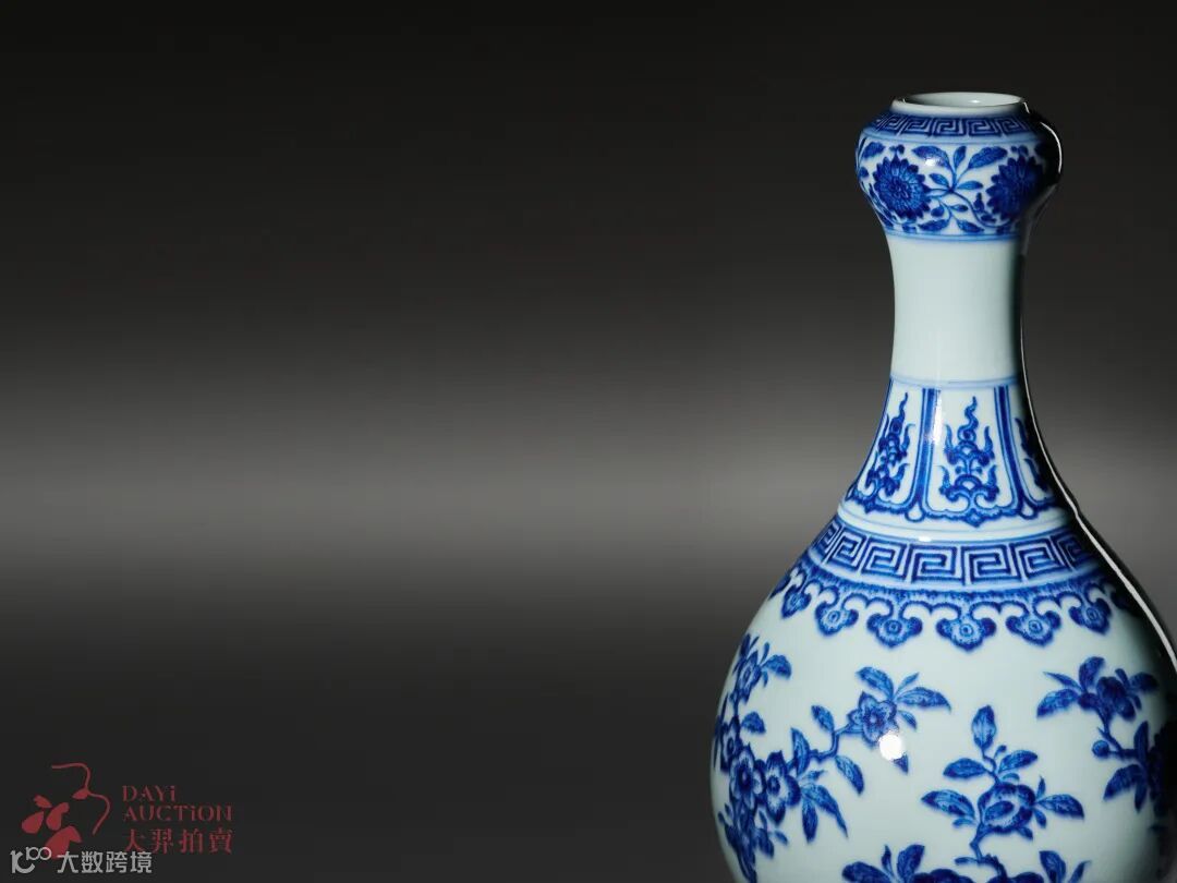 蒜头瓶因瓶口形似蒜头而得名,始见于汉代青铜器造型,瓷制者则以明嘉靖、万历两朝为盛。清代官窑沿用此种器形烧造宫廷陈设用瓷,尤以乾隆时期的青花品种较为名贵。据《乾隆记事档》载,乾隆三年六月二十五日,乾隆帝就曾命太监高玉传旨将内府旧藏一批明代瓷器,交付景德镇御窑厂让唐英仿烧,其中就有“宣窑青花白地蒜头瓶”。此品种两岸故宫博物院及南京博物院均有收藏。