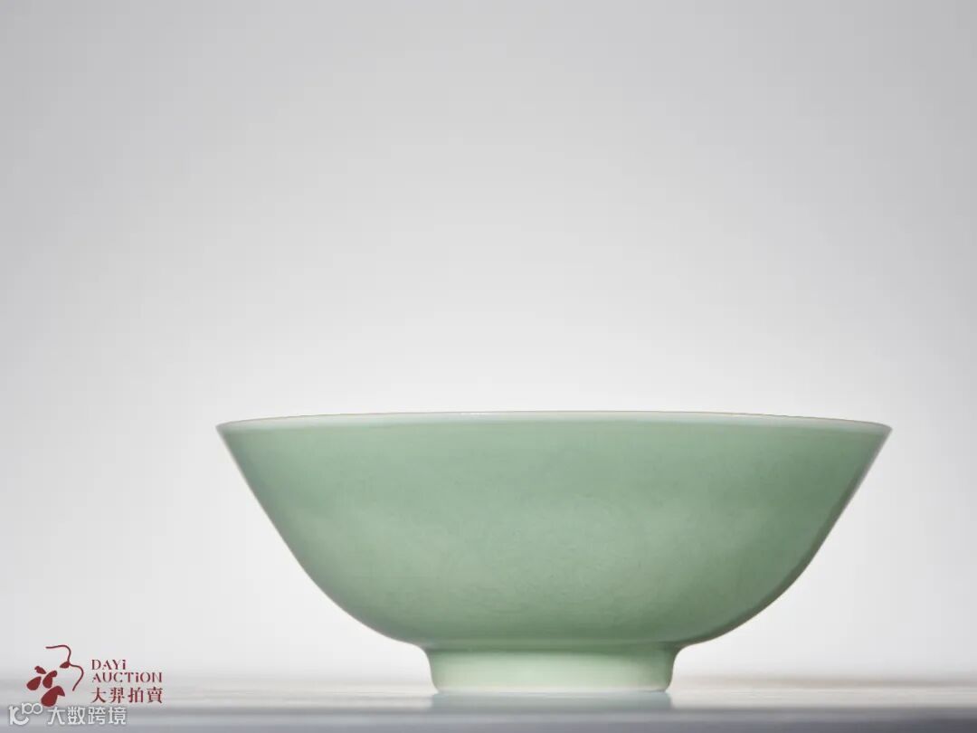 此碗敞口微侈,斜弧腹身,底作圈足,形制规整。其上釉色胎质均匀,平滑细腻,器表光泽莹润,使整器在沉稳端庄的同时更添清幽淡雅,显得宁静安详。