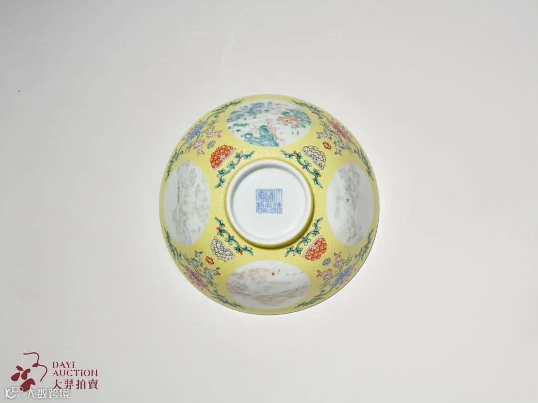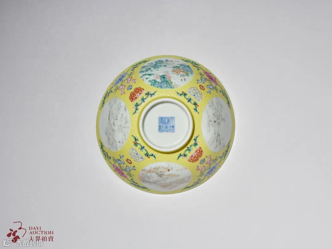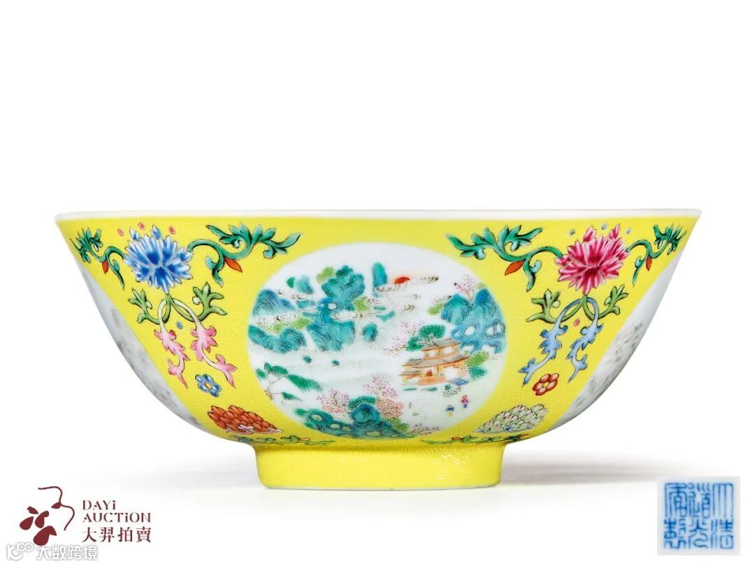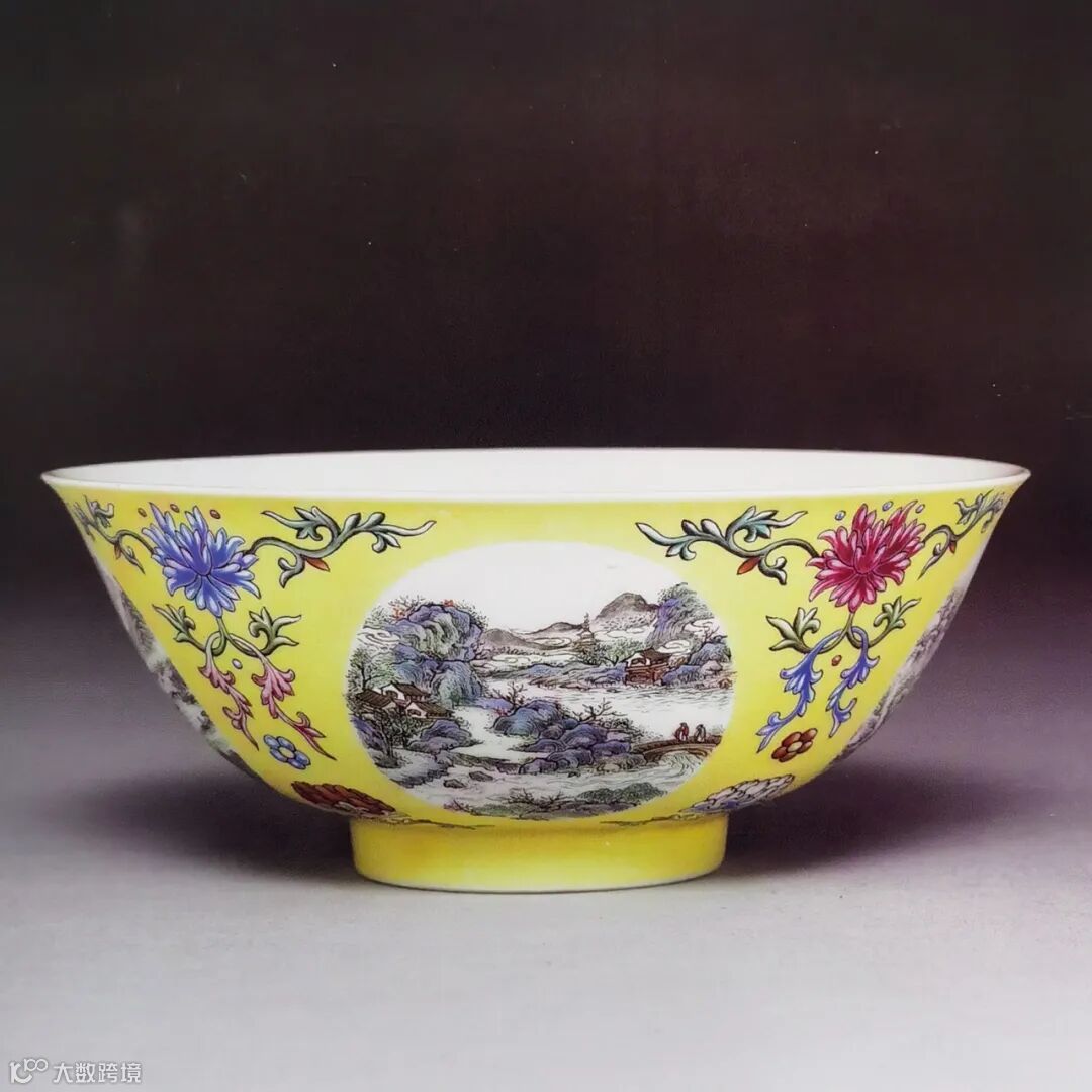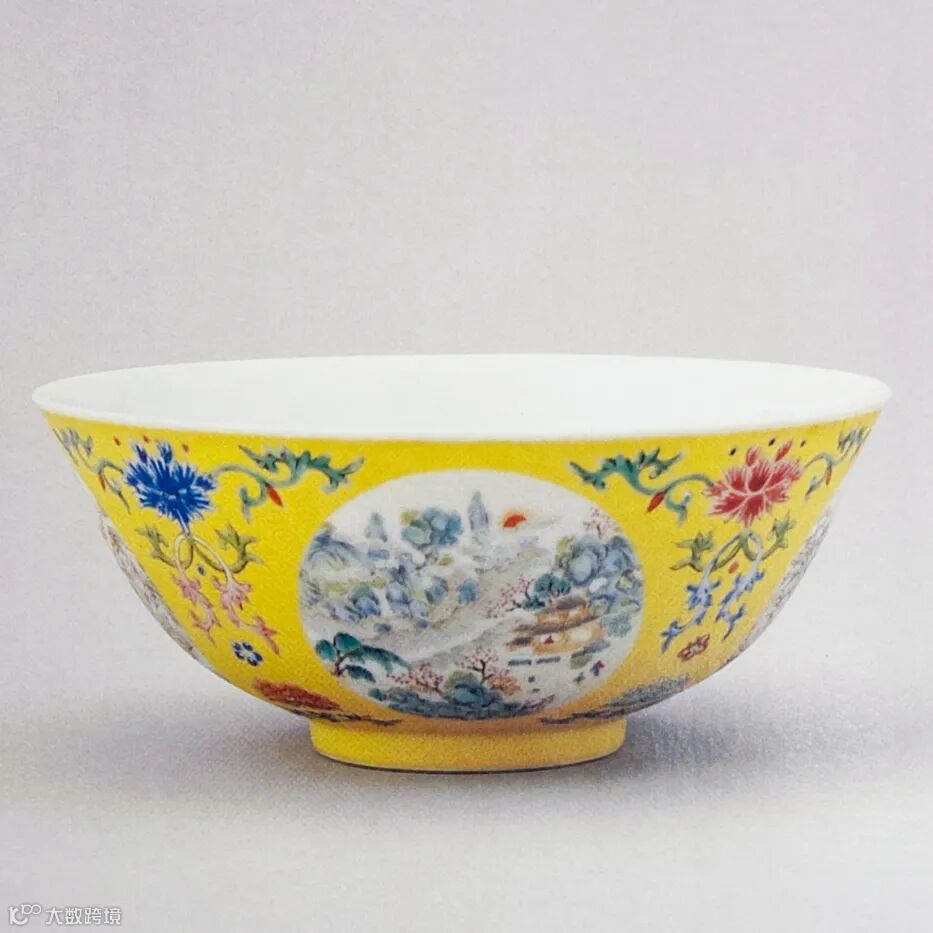 左:清道光 黄地粉彩开光山水纹碗(玫茵堂藏)