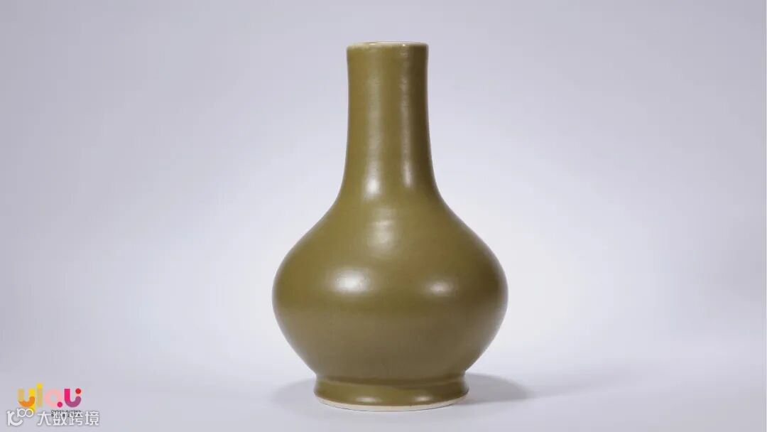 此瓶为清代官窑传统品种,因形似荸荠而得名。直口,长颈,垂腹,圈足。其形规整,外壁通施茶叶末釉,均匀细腻。茶叶末釉原名厂官釉,是清雍正﹑乾隆时期御窑厂督陶官唐英的创新之作,其釉呈色稳定,因失透而显庄严﹑沉稳,窑变形成黄绿变化。唐英《陶成纪事碑》记载厂官釉品种有三:蛇皮绿﹑鳝鱼黄﹑黄斑点,后人习称鳝鱼青﹑鳝鱼黄﹑茶叶末。从器型﹑胎土和釉色上看,拍品当属光绪时期精品无异。