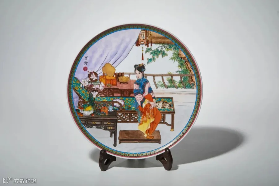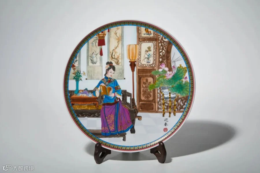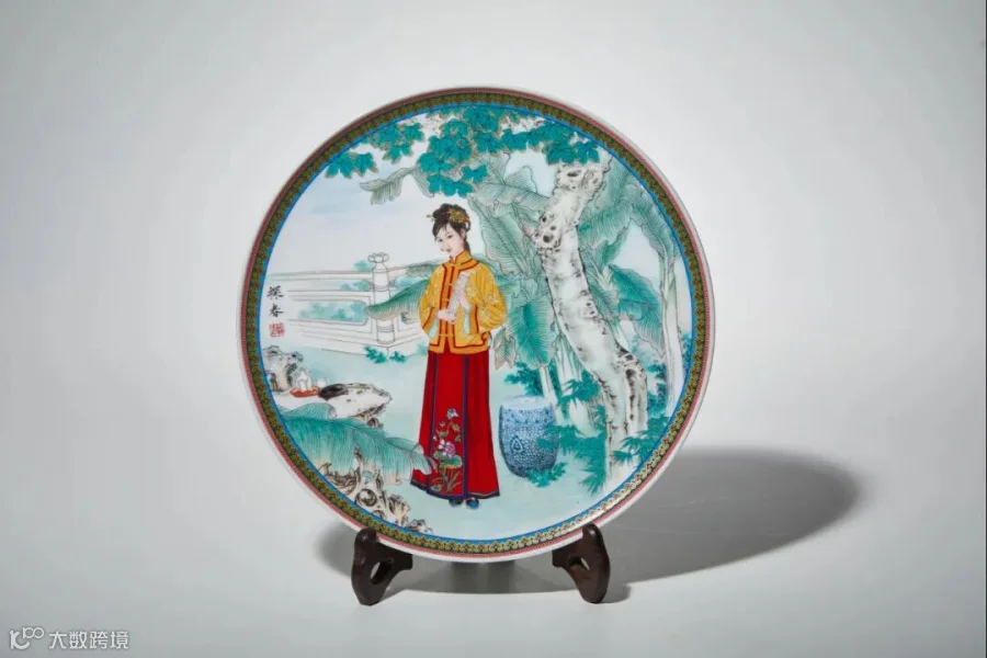 《红楼梦十二金钗艺术彩盘》经过了3年的构思与创作,前后进行了多次创作研讨、画稿修改,历经反复试制,难度极大。画面描绘精细,布局饱满,立体感强,颜色非常鲜艳。整套彩盘精美绝伦,堪称难得一见的艺术精品。根据《红楼梦》中描述的十二个经典场景做了高度生动的描绘,其中人物性格、服饰、周边环境、道具等都是经过专家学者仔细推敲,既遵循了原作又艺术的浓缩提炼,使每一副画面的精美大气,边饰采用了回形纹和如意纹,更显得整套彩盘精美绝伦贵气十足。