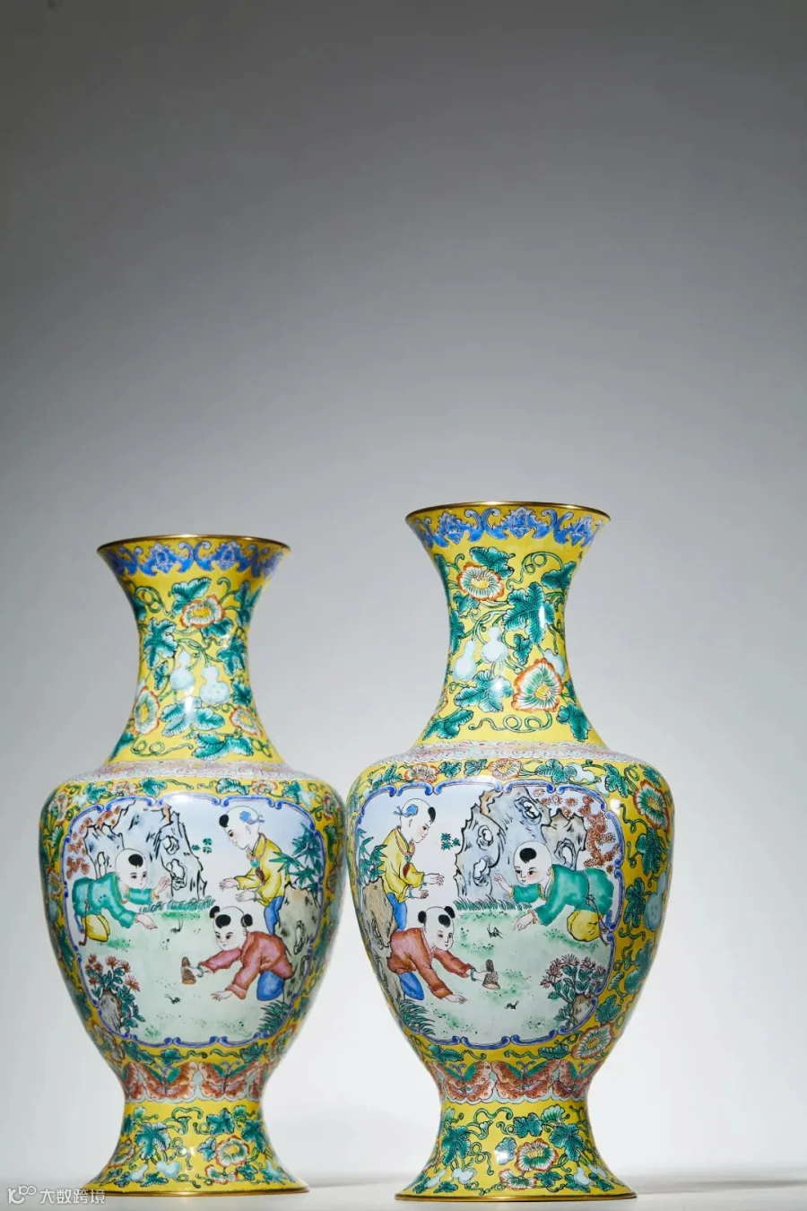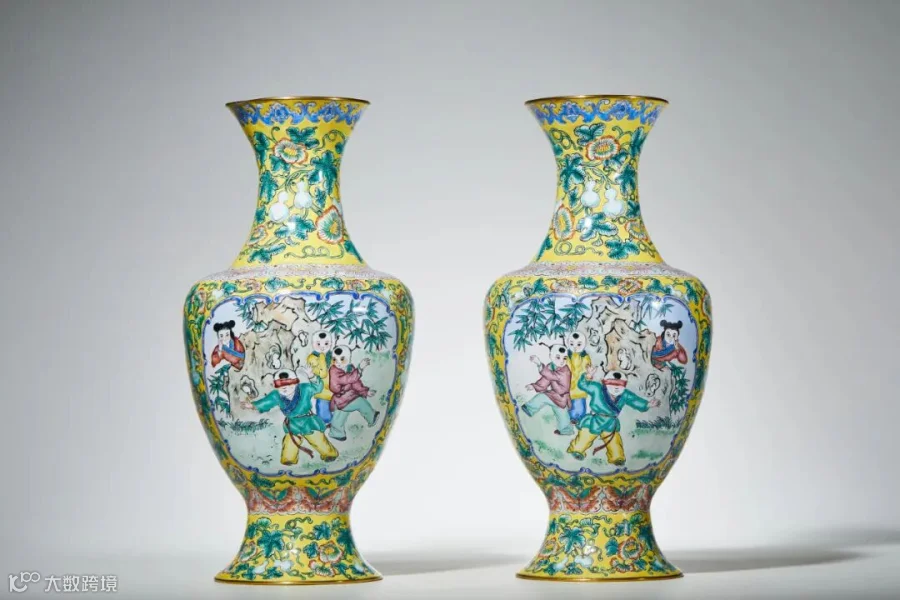 出口创汇时期,铜胎画珐琅,画工精细,为出口精品。