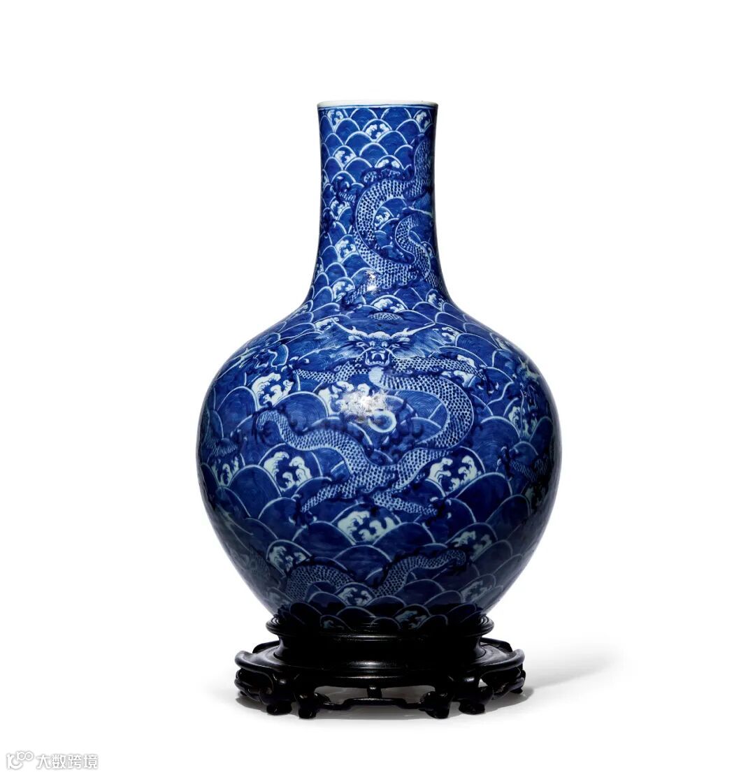 青花九龙闹海图天球瓶