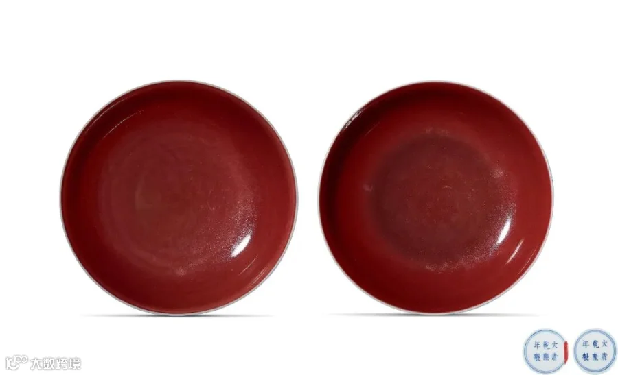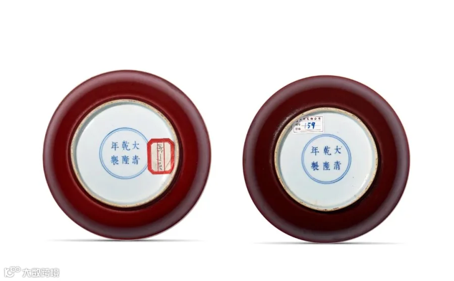 霁红釉盘一对 款识:“大清乾隆年製”六字三行楷书款 直径:18 cm. 来源:国营文物商店旧藏