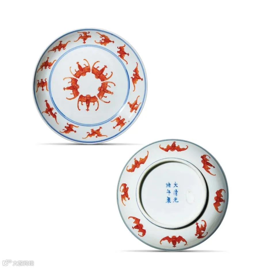 青花矾红洪福齐天纹盘一对 款识:“大清光绪年製”六字双行楷书款 直径:15 cm.