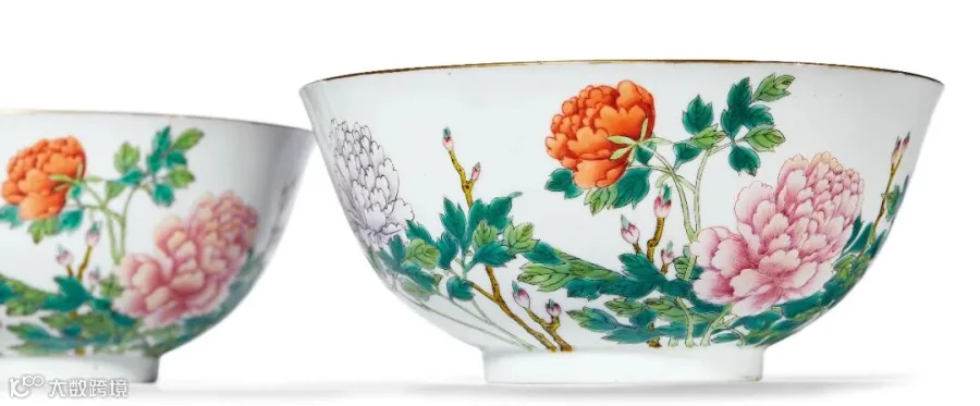 LOT819清光绪粉彩牡丹花卉纹碗一对(局部图)