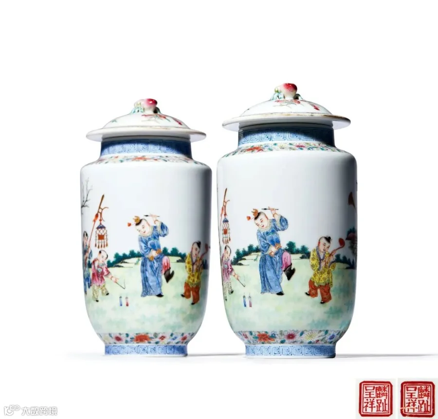LOT852 民国粉彩婴戏图壮罐一对(另面图)