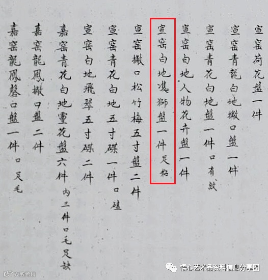 乾隆十二年十二月《各作成做活計清檔》中亦有此类盘之配座记录:“十二日,司庫白世秀七品首領薩木哈来説,縂管劉滄洲交:……宣窑白地雙獅盤一件(足粘),傳㫖:着俱配花梨木座,欽此。”