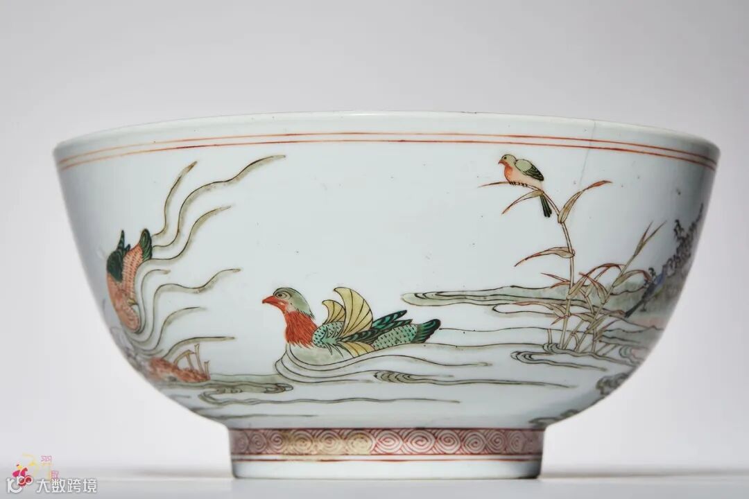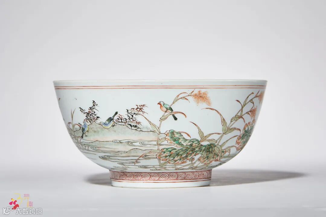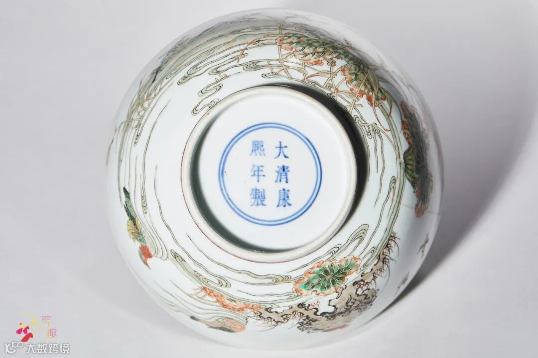 五彩荷塘秋禽图碗 款识:“大清康熙年制”六字双行楷书款 直径:17.5 cm.