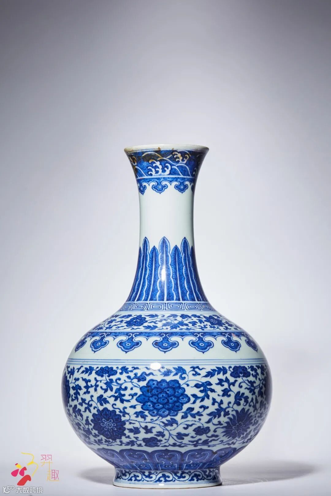青花缠枝莲纹玉堂春瓶 高:19 cm.