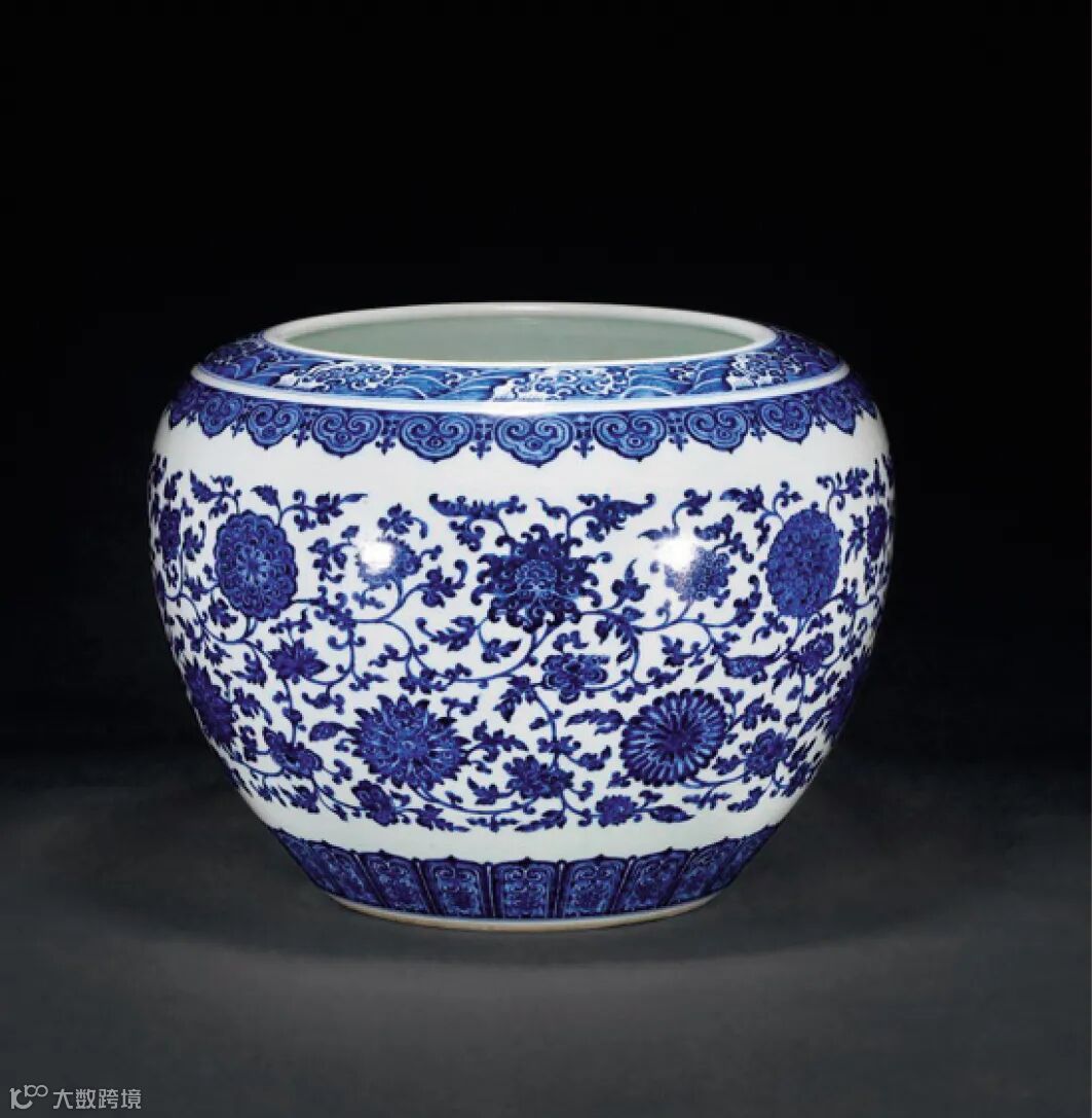 本品造型规整,为乾隆时期御窑烧造技术完全成熟的集大成之作。古代文人雅士对精神生活的追求与营造达到极致,书斋画室陈设尤其讲究人与器物之关系,故在笔墨纸砚的基础上施展创造力,衍生出无数文房用品,卷缸就是其中之一。卷缸属文玩一类,多用作书房陈设与书画容器,故名“卷缸”,本件拍品造型又远大于传统卷缸的尺寸,故又称之为“大卷缸”。