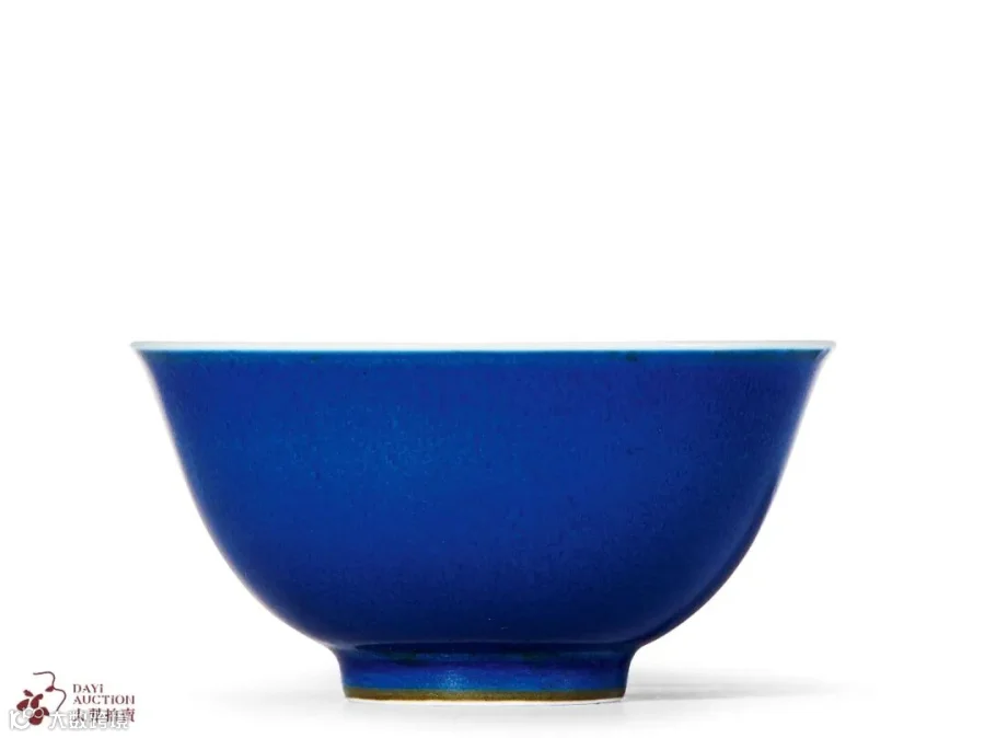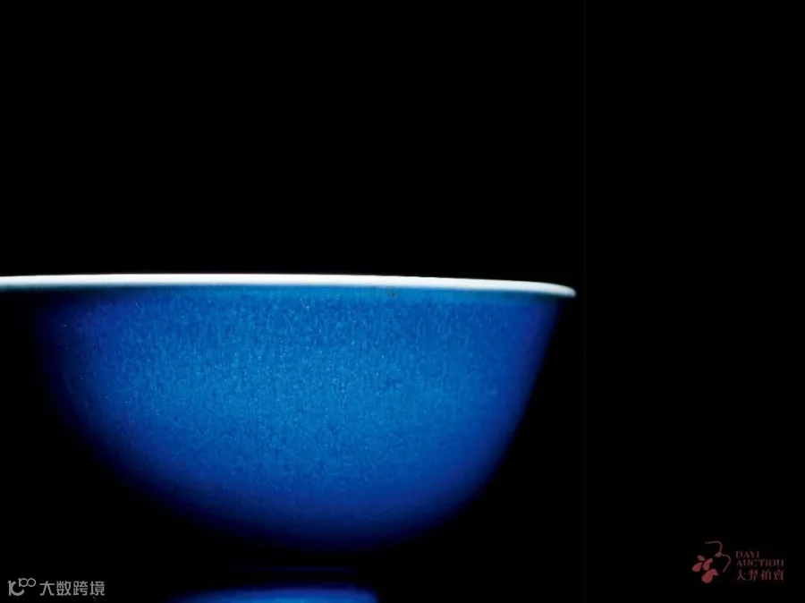 此茶圆造型规整,碗敞口弧壁,线条优美舒畅。造型秀美端整,胎体细致坚密,外壁通体洒蓝釉,釉光鲜亮细润,使人深深陶醉。底以青花书“大清雍正年制”六字双行楷书款,字体俊秀。洒蓝釉属珍稀之品,色泽浓郁深沉,细观又见其釉层百转千回,如浩渺烟波,如梦似幻。若言瓷器来源于火的艺术,此器便是其最佳诠释,整体造型简洁端庄,胎体薄厚均匀,底足修饰浑圆规整,体现出雍正朝高超的制器水准。