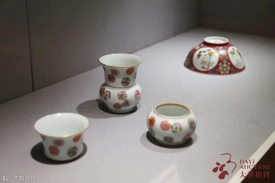 雍正十三年(1735年)唐英所撰《陶成纪事碑记》中即载有“仿成窑五彩器皿”。此外检索清宫档案资料可知,雍正时期清宫旧称“成窑五彩八如意酒圆”,其落款方式有两种,有落雍正本朝款,亦有落成化款,拍品即为后者。