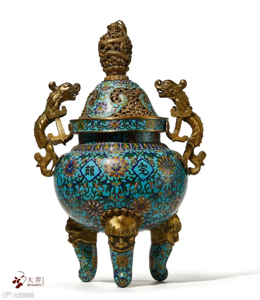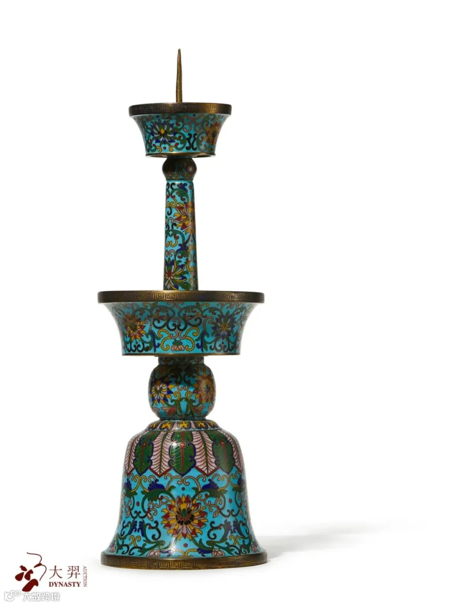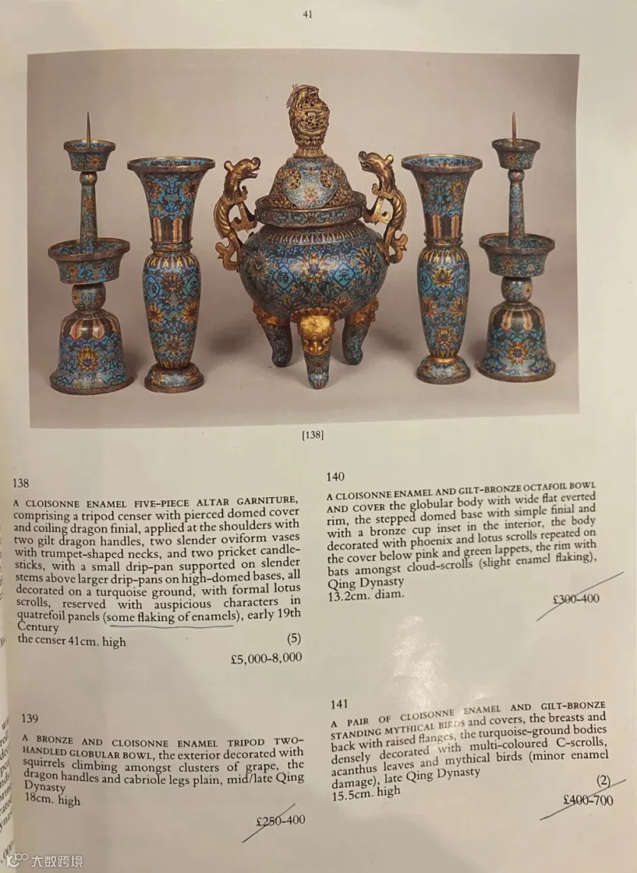 LOT39 清 铜胎掐丝珐琅五供 高:41 cm. 材质:珐琅 来源:伦敦佳士得1985年3月春拍,Lot138
