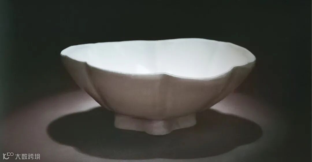 本件器物更为特殊,圈足的制作方式十分独特,呈海棠形与器身造型相呼应。并与常见的内挖修足的方式不同,这件器物的足部是单独制作成型后再与器身粘合而成的,器底釉下有若干横向刮削痕迹,是为了更好的粘合底足而特意制作的。在各大博物馆公私收藏系列中,目前未发现同类器型作品。该器的胎土细腻程度以及积釉处气泡分布状态等特征与同时期邢窑作品有些许差异,更加偏向于定窑作品的特征。