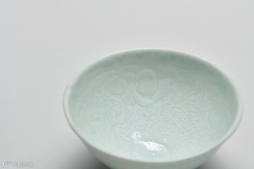 青白釉暗刻缠枝莲婴戏纹碗