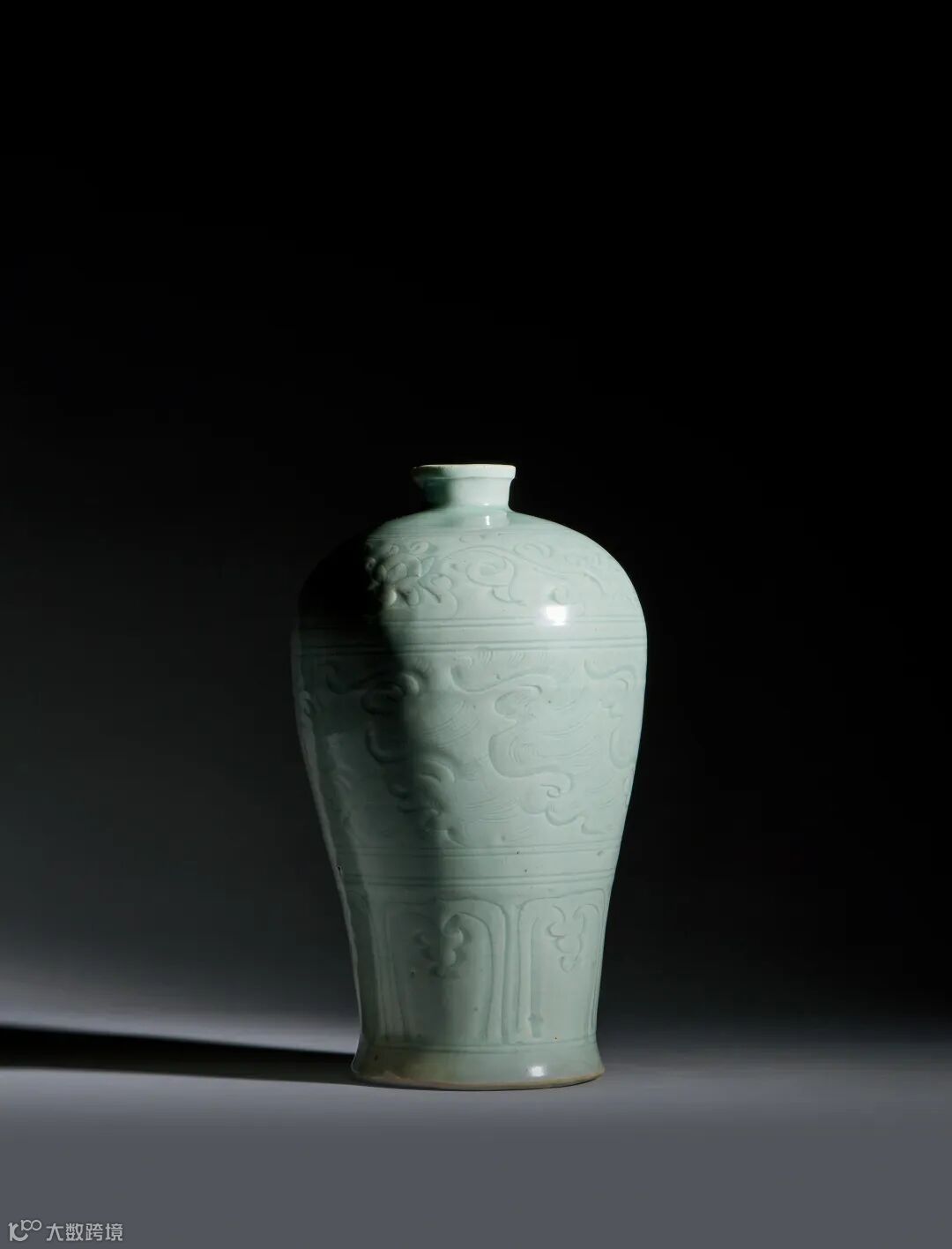青白釉刻海水牡丹纹梅瓶