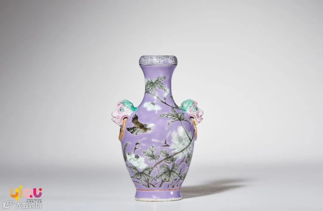 浅藕荷地三秋献瑞三寸双耳活环酒樽式瓶