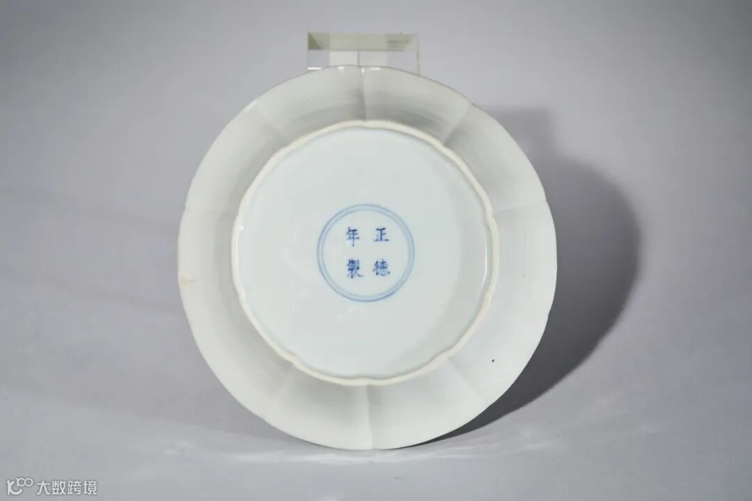 洗作十瓣菱花式,敞口,浅腹,平底,圈足。通体施白釉,釉面匀润纯净,底施白釉,书“正德年制”楷书款,外围青花双圈。全器规整大方,典雅润泽,置于书房足显文人气息。正德白釉早期与成化、弘治基本相似,中后期器体变得厚重。如此器胎体轻巧细致,釉色莹润,应为正德朝早期的精品。