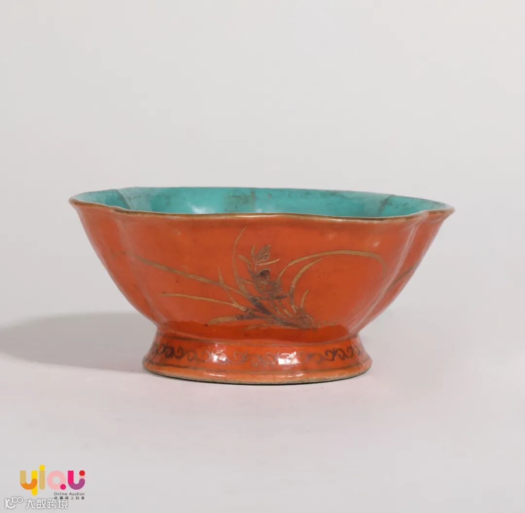 清同治 矾红彩描金兰花纹花口洗