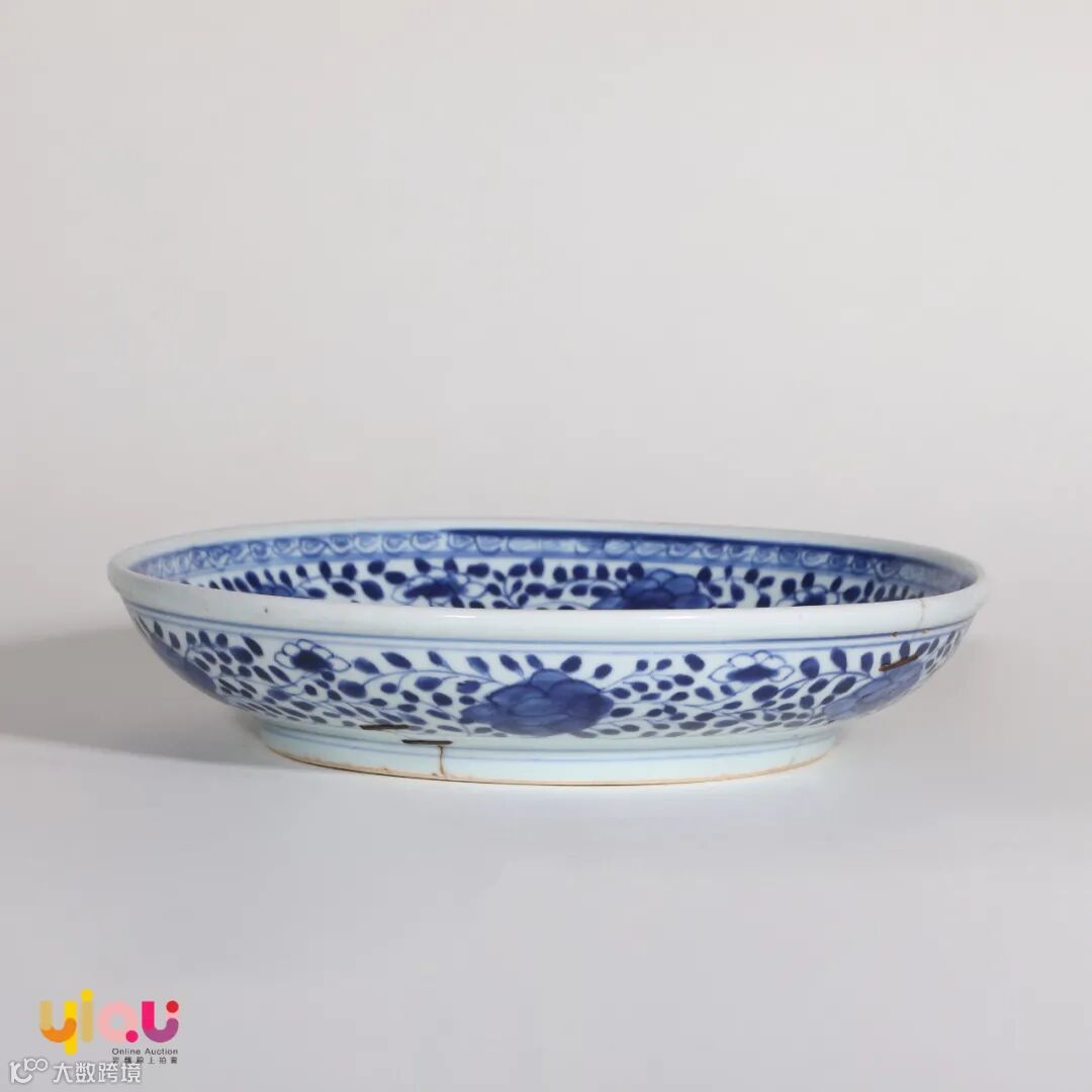 清同治 青花缠枝莲纹盘
