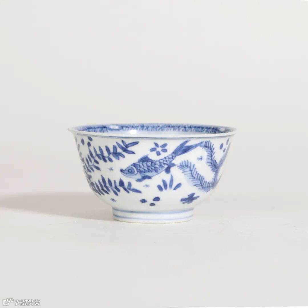 清康熙 青花鱼藻纹小杯